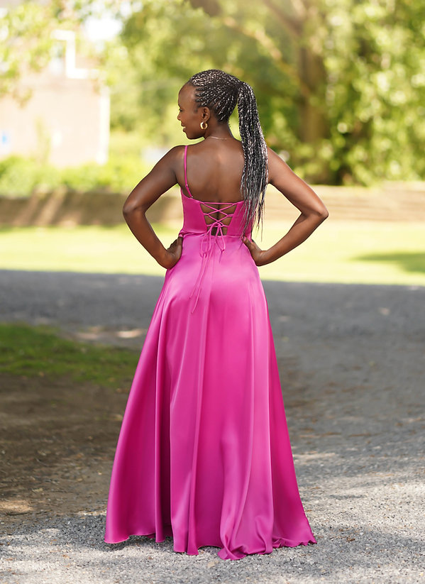 • Robe longue en satin fendue